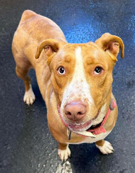 Notes: Princess is a beautiful 1 year old sweetheart weighing 63 pounds of pure love and joy. This playful girl has the happiest spirit and is always ready for fun. Whether it is chasing her favorite toy, learning new tricks for treats, or romping around with her dog friends, Princess brings energy and smiles wherever she goes. She is great with other dogs, does well with cats, and has been around kids, making her a wonderful addition to a loving family. Princess has that perfect mix of playful and affectionate, and once she has had her fun, she is more than happy to soak up all the love and attention you will give her.